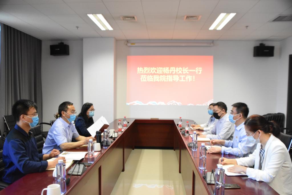 5月20日上午,学校党委副书记、校长杨丹,教务处处长李莉文,党校办陈小龙一行莅临365官网进行调研工作。调研会在365官网1016会议室召开。学院党总支书记兼院长蔡鸿、副院长仵胜奇、教师代表张东英以及办公室相关老师参加了会议。会议由蔡鸿主持。