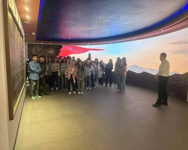 讲解员生动详细地介绍了北外的发展脉络,从最初的中国人民抗日军政大学三分校俄文队,到如今的国际化语言学府,北外始终秉持“兼容并蓄,博学笃行” 的校训,不断开拓进取。同学们在参观过程中,不仅了解了北外的历史,更感受到了北外人坚韧不拔、勇于担当的精神
